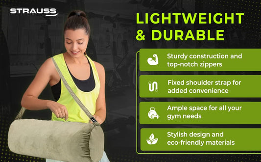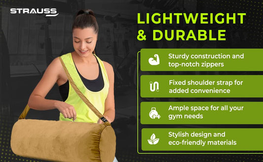 Strauss Velvet Duffel Bag |Travel & Gym Bag |Eco-Friendly, Washable & Durable Bags for Men & Women |Fitness & Sports Accessories Holder |Suitable for Yoga, Workout, Pilates, Gym |Waterproof,(Green)