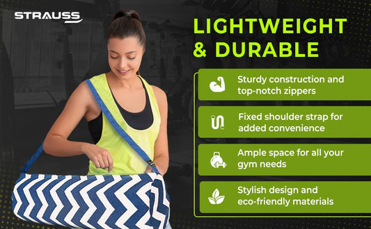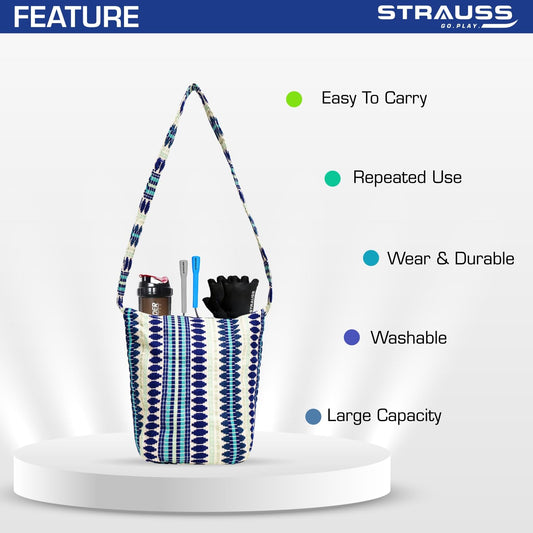 Strauss Jacquard Gym Bag | for Both Men and Women |Breathable, Durable and Long- Lasting| Suitable for Travel, Gym and Yoga Classes| Eco- Friendly and Washable | (Blue)