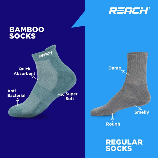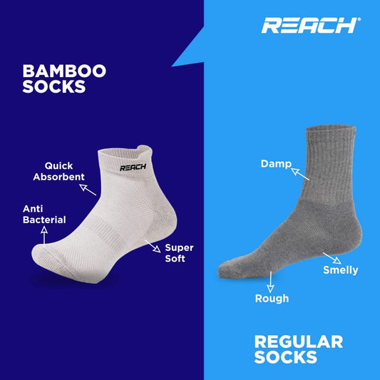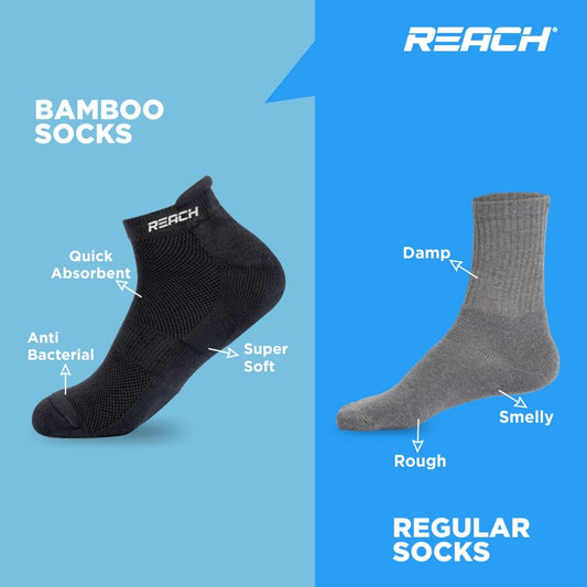 REACH Bamboo Fibre Ankle Length Socks For Mens & Womens | Breathable Mesh & Odour Free Socks | Sports & Gym Socks | Soft & Comfortable | Pack Of 3 - Light Grey, Dark Grey & Black