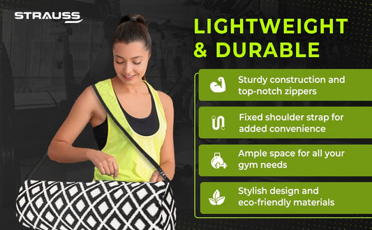 Strauss Jacquard Gym Bag | for Both Men and Women |Breathable, Durable and Long- Lasting| Suitable for Travel and Gym | Eco- Friendly and Washable |(Black Pattern)