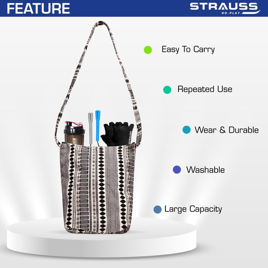 STRAUSS Jacquard Multipurpose Bag | for Both Men and Women |Breathable, Durable and Long- Lasting| Suitable for Travel, Gym and Yoga Classes | Eco- Friendly and Washable | (Black)