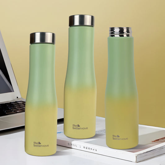 Splash Stainless Steel Water Bottle 1 Litre | Leak Proof, Durable & Rust Proof | Non-Toxic & BPA Free Steel Bottles| Steel Water Bottle | Dual Lemon Green (Pack of 3)