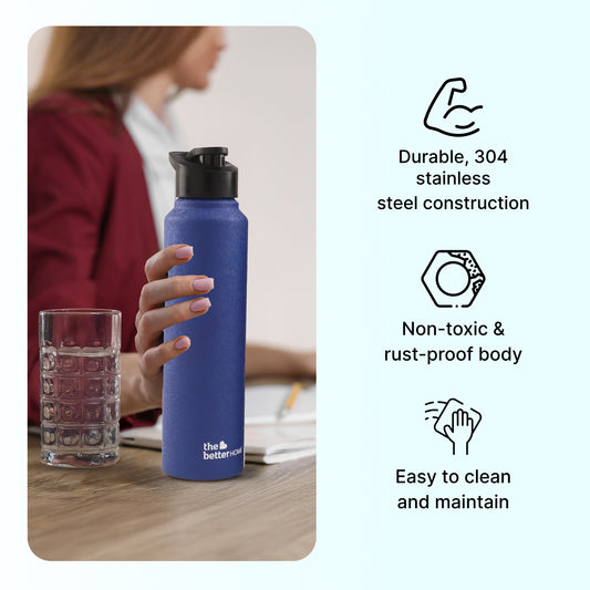 Splash Stainless Steel Water Bottle 1 Litre | Leak Proof, Durable & Rust Proof | Non-Toxic & BPA Free Steel Bottles| Steel Water Bottle | Dark Blue(Pack of 2)
