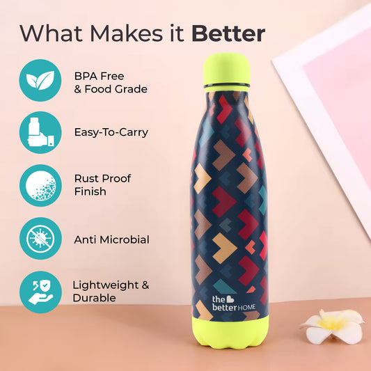 500ml Insulated Stainless Steel Water Bottle | Upto 18 Hours Insulation | Insulated Water Bottle | Airtight | Leak Proof | BPA Free | Rainbow Grid