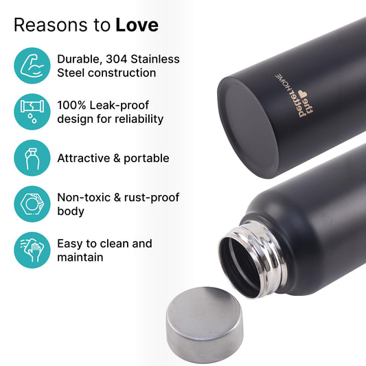 Strauss Refuel Steel Water Bottle | Leak Proof & Rust Free | Ideal for Office, Gym, Sports, Kitchen, Hiking, Trekking & Travel | Vacuum Insulated,(Black)