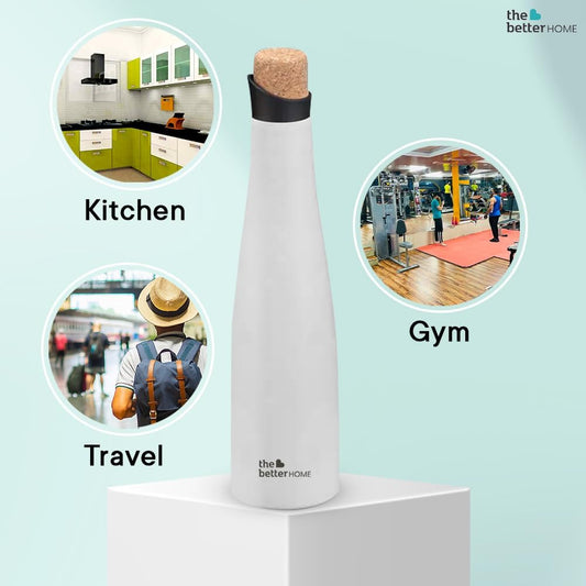 750ml Insulated Stainless Steel Water Bottle With Cork Cap | Insulation 8 Hrs | Hot And Cold Water For Office School Gym | Airtight | Leak Proof | BPA Free | Silver