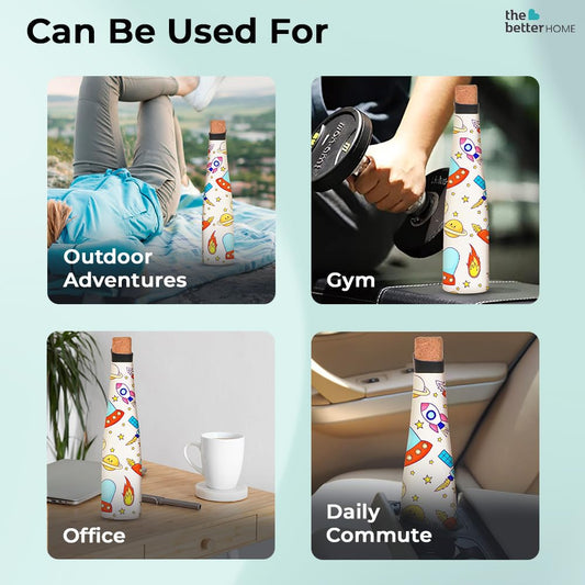 Bliss Series Insulated Water Bottle 750ml with Cork Cap Water Bottle for Office Steel Water Bottles for Kids | Hot & Cold Water Bottle | Aesthetic Water Bottle (Astronaut Print)