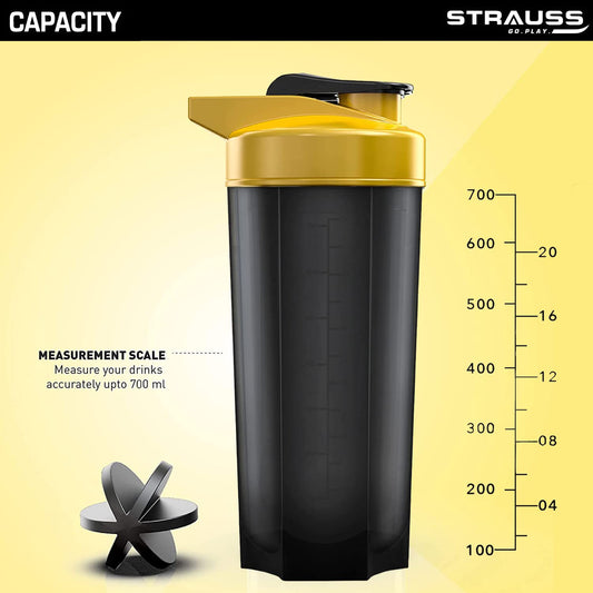 Strauss Recharge Shaker Bottle | BPA-Free Protein Shaker with Blender Ball | Leak-Proof Gym Bottle for Protein Shakes | Gym Bottle for Men and Women | Ideal for Gym, Yoga & Running,(Black/Yellow)