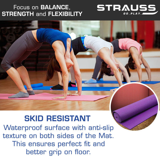 STRAUSS Yoga Mat with Carry Bag | Anti-Slip Exercise Mat for Women & Men | Home Gym Workout, Yoga, Pilates | Eco-friendly | Non-Slip Surface | Lightweight & Durable | 8mm (Purple)