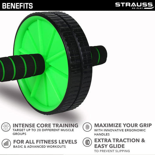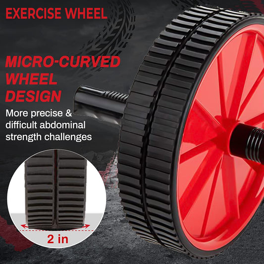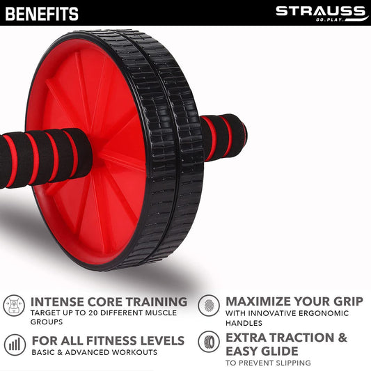 Strauss Double Wheel Ab & Exercise Roller | Anti-Skid Wheel Base, Non-Slip PVC Handles | Ideal for Home, Gym workout for Abs, Tummy, (Red)