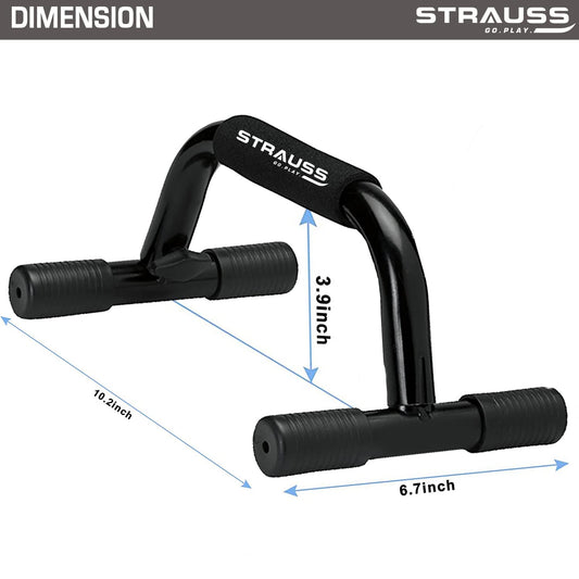 Strauss Push-Up Bar, Pair | Comes with PVC Bracket for Non-Slip & Sturdy Exercise at Home or Gym | Padded and Angled Grip Push-Up Stands for Men & Women Exercise, (Black)