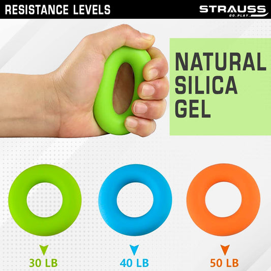 Strauss Silicon Palm Hand Grip Exerciser | Hand Strengthener for Carpal Tunnel Relief and Grip Strength | Silicone Finger Gripper and Finger Stretcher | Ideal for All Skill Levels | Set of 3