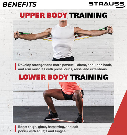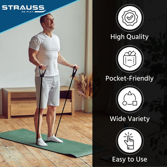 Strauss TPE Resistance Tubes with Door Anchor, Handles, Waterproof Carry Bag, Legs Ankle Straps | Ideal for Resistance Training & Physical Therapy | Exercise Bands for Gym & Home Workouts | Set of 5