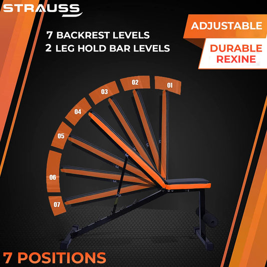 Strauss Adjustable Heavy Duty Workout Gym Bench | Home Gym Bench for Multipurpose Exercises | Incline Decline Bench with 7 Positions | Fitness Bench for Bench Press, Chest Press,(Black/Orange)