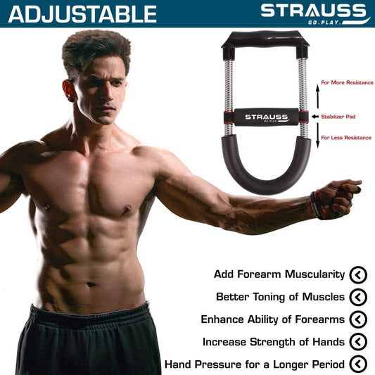 Strauss Wrist/Forearm Strengthener |Improves Grip Strength |Arm Exercise Equipment for Forearm Workout |Adjustable Resistance |Hand and Wrist Strength Trainer|Ideal for Athletes and Musicians, (Black)