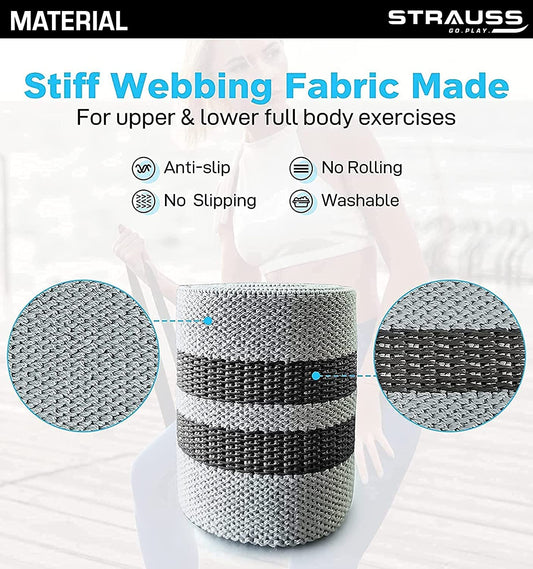 Strauss Fabric Resistance Bands | Resistance Loop Bands for Exercise, and Workout | Ideal for Stretching, Chin Ups, Physical Therapy & Home Exercise for Men & Women (Set of 3)