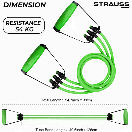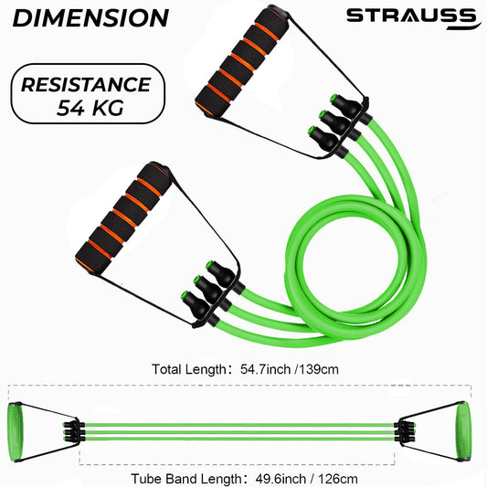 Strauss Triple Resistance Tube | Door Anchor for Exercise & Stretching | Gym Equipment for Strength Training, Home & Gym Workout for Men & Women with Carry Bag | 19 Kg,(Green)