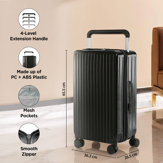 20 inch Cabin Bag - Durable, Scratch Resistant | Trolley Suitcase with 360° Wheels | Black | 45L