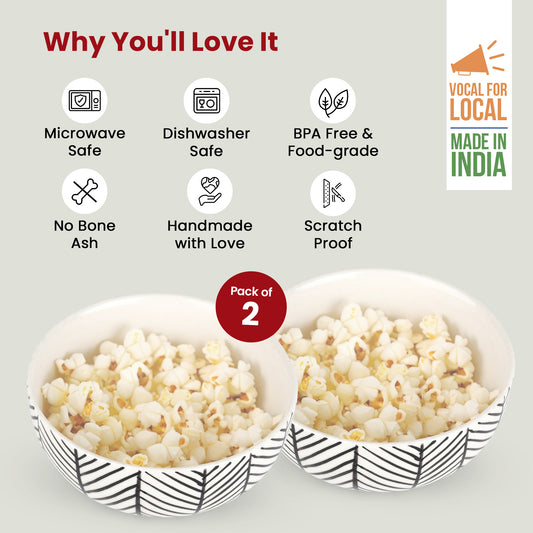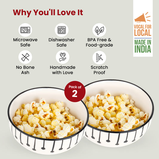 USHA SHRIRAM Ceramic Bowl for Snack & Dinner(2Pcs) | Ramen Soup Bowl Microwave Safe | Chip Resistant Dinnerware | Snack Serving Bowl | Dinning Bowl Katoris for Dinner | Serving Bowl Set | Pasta Bowl