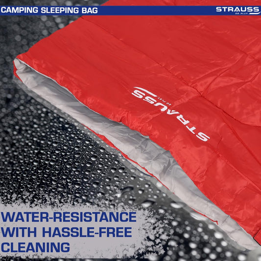 STRAUSS Camping Sleeping Bag 8°C to -20°C | Can Be Used in Summer, Spring and Winter | Lightweight and Portable | Ideal for Travel Camping Hiking and Trekking | for Adults & Kids,(Red)