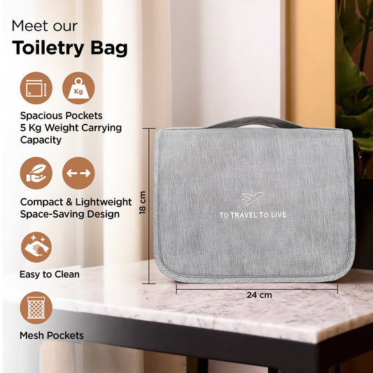 Travel Toiletry Bag - Lightweight Dopp Kit for Organization | Pack of 1 | Grey | Ideal for Travel