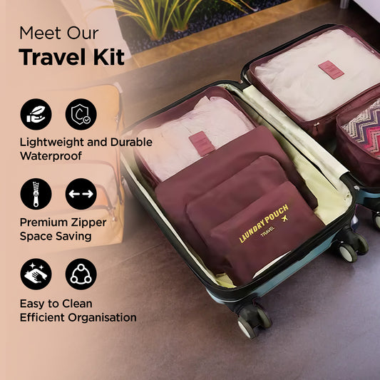 6-piece Vacuum-Compressed Travel Organizer + Pouch Packing Cubes | Cosmetics/Laundry/Socks/Shoes Organizer Pouch|Waterproof, Lightweight, Foldable Storage Bag | Maroon