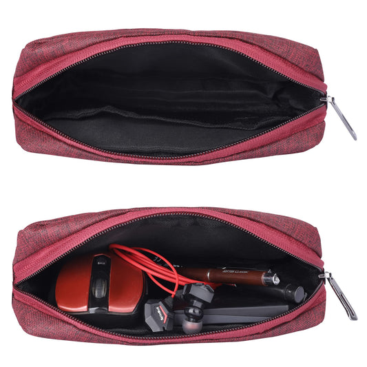 The Scholar series Multipurpose Polyester Travel Pouch Pencil Case Toiletry Shaving Kit Bag for Men Make-Up Pouch Cosmetic Case for Women Travel Kit for Men (Maroon) 19 x 5.5 x 11 cm