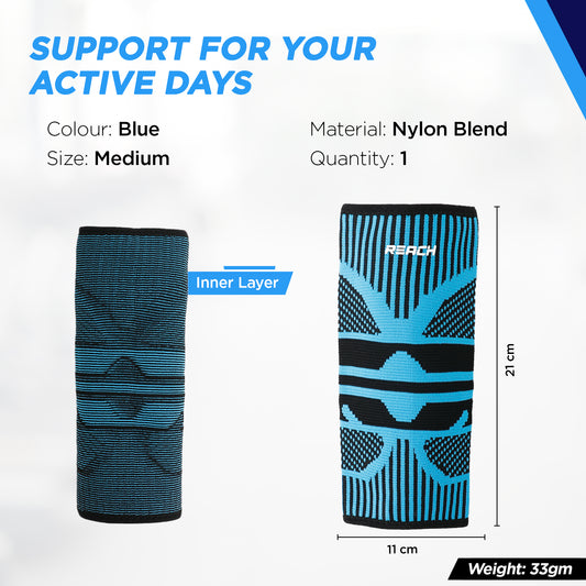 REACH Elbow Support for Gym | Elbow Band for Pain Relief | Nylon Material | Tennis Elbow Band for Men & Women | Elbow Guard Cricket, Badminton & Sports | Compression Technology & No Marks | Blue-Large