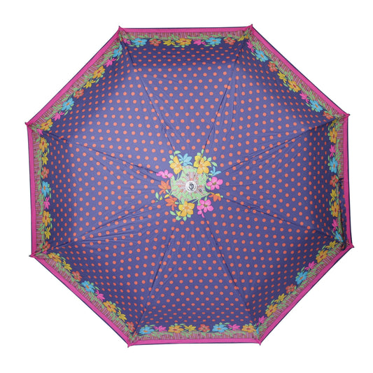 THE CLOWNFISH Umbrella Polka Dot Series 3 Fold Auto Open Waterproof Water Repellent Nylon Double Coated Silver Lined Umbrellas For Men and Women (Purple with Peach border)