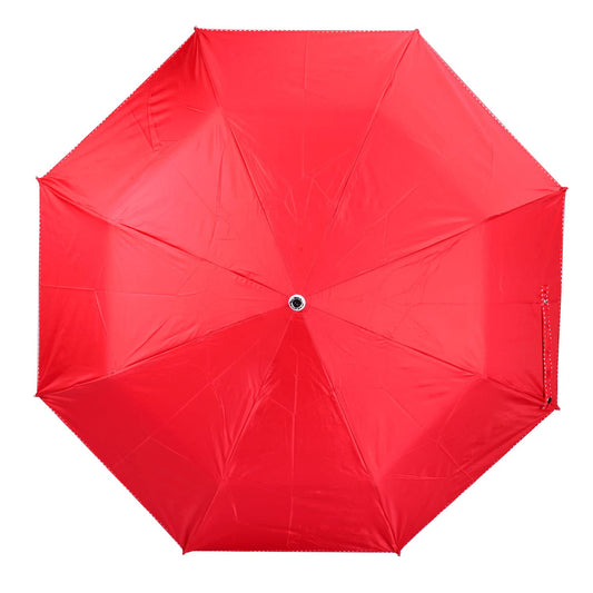 Folding Umbrella - Auto Open, Waterproof, Double-Coated | Strap Included | 32 cm | Monochrome Red