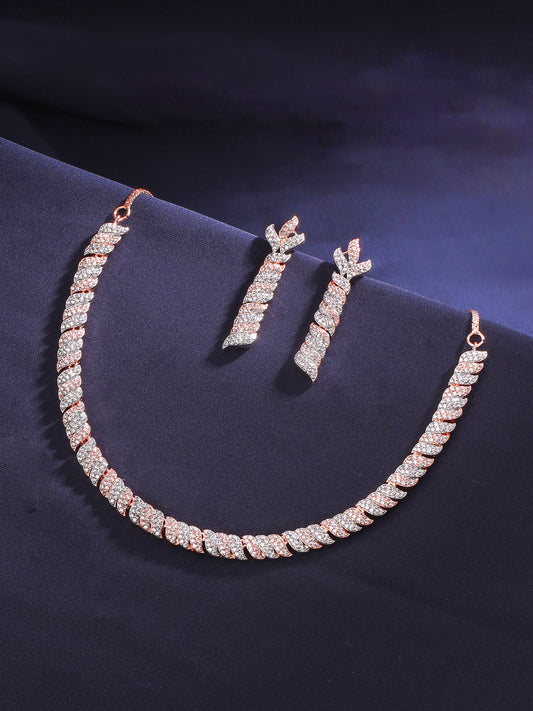 American Diamond Jewellery Set for Women - Stylish White Stone Necklace & Earrings | Rose Gold Plated | One Size