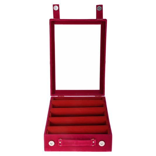 4 Rod Bangle Box: Velvet Coated Wooden Jewelry Organizer | Pink | 30x22x9 cm