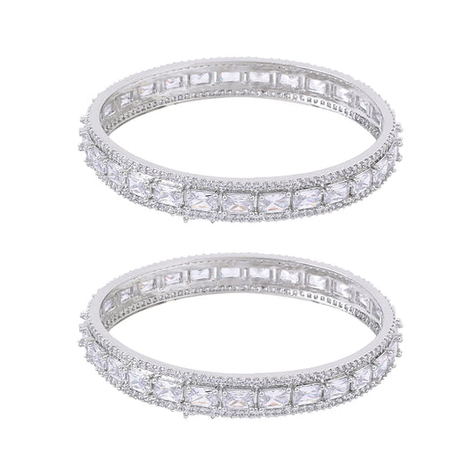 American Diamond Bangles for Women - Elegant Silver Tone | Size 2.4 | Birthday & Anniversary Gift
