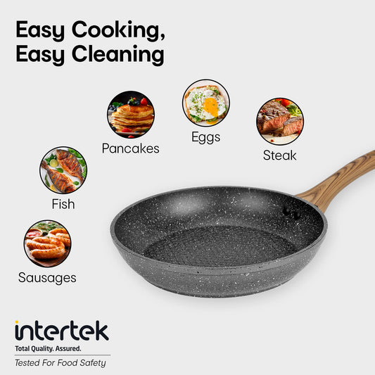 28Cm Wood Look Non-Stick Frying Pan - Durable, Dishwasher Safe | Granite Finish | 1 Piece