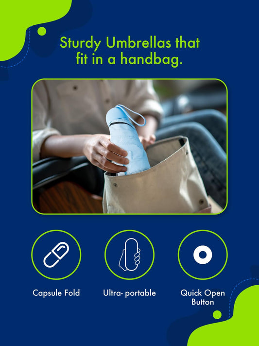 ABSORBIA Unisex 3X Folding Umbrella Navy Blue and 5X Folding Umbrella Light Green(Pack of 2), For Rain & Sun Protection and also windproof | Double Layer Folding Portable Umbrella with Cover