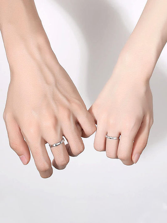925 Sterling Silver Adjustable Couple Rings - Crystal Studded | Includes Authenticity Certificate | Silver Color