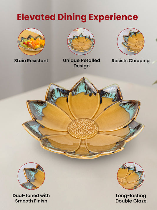 Ceramic Fruit Plate - Microwave & Dishwasher Safe, Scratch Resistant | Round Snack Plate | 11 Inch | Brown Blue