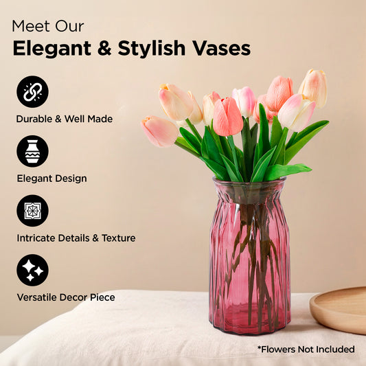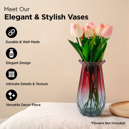 Glass Vase for Home Decor (2Pcs- 30cm) |Center Table Decorative Items| Flower Vases for Home Decor| Dining Table Decorative Items| Transparent Flower Vase for Living Room, Office, Bookshelf- Red