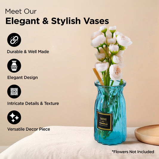 Pack of 2: Glass Vases for Home Decor | Decorative Items for Living Room, Office & Dining Table | Blue