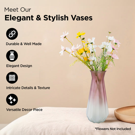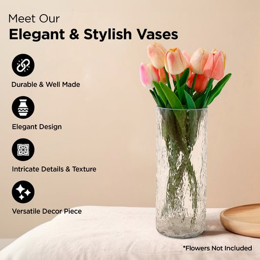 Glass Vase for Home Decor (2Pcs- 24cm) |Center Table Decorative Items| Flower Vases for Home Decor| Dining Table Decorative Items| Transparent Flower Vase for Living Room, Office, Bookshelf