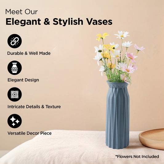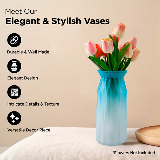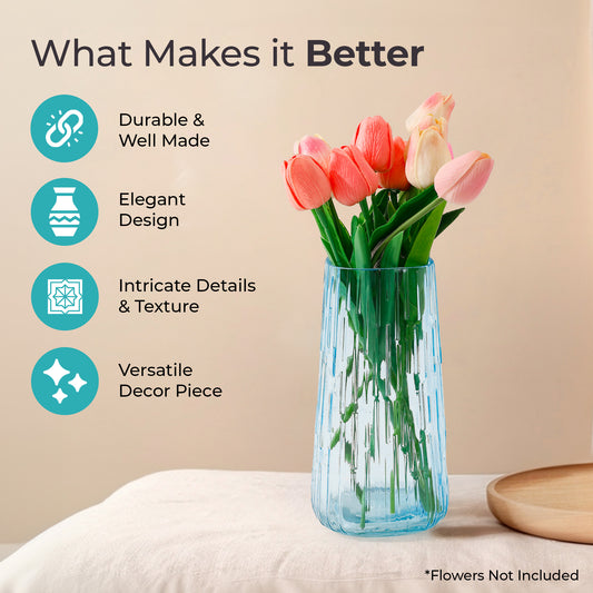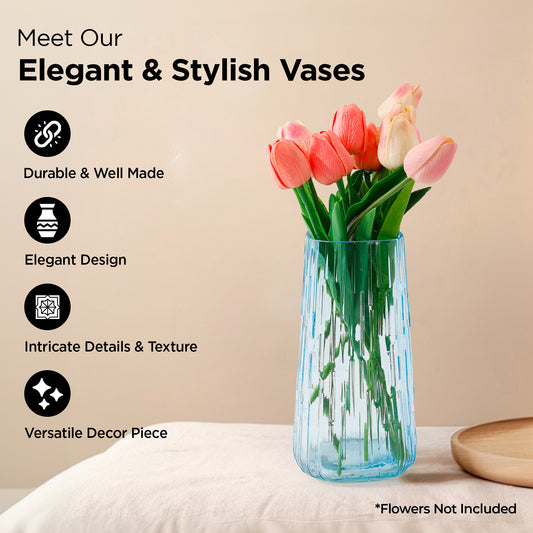 Glass Vase for Home Decor (2Pcs- 30cm) |Center Table Decorative Items| Flower Vases For Home Decor| Dining Table Decorative Items| Transparent Flower Vase For Living Room, Office, Bookshelf- Blue