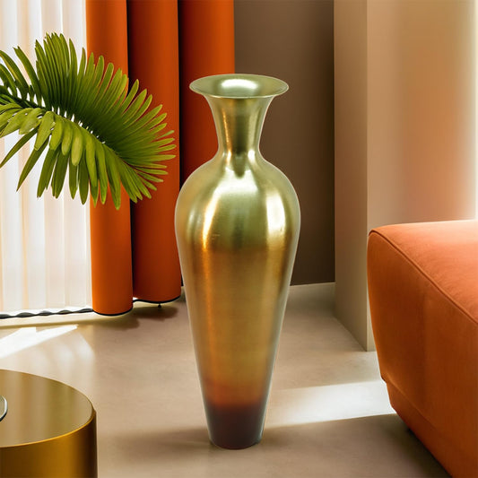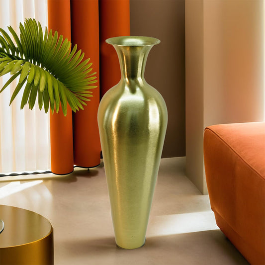 Tall Big Metallic Flower Vase for Home Decor | Long Flower Vase Gift for Weddings, Housewarmings, Gatherings | Large Decorative Sofa Side Metal Vase for Living Room, Office, Bed Corner (Gold)