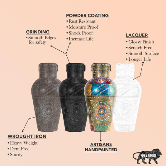 Handpainted Metallic Tall Flower Vase for Home Decor (Large) | Long Flower Vase Gift for Weddings, Housewarmings, and Gatherings | Decorative Metal Vase for Living Room, Office & Bed Corner