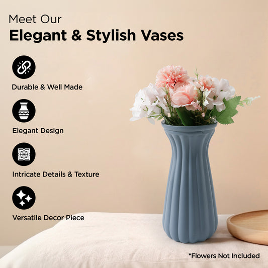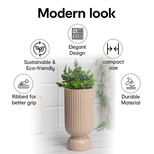 Ribbed Beige Ceramic Flower Vases for Home Decor | Flower Vase for Living Room, Bedroom, Office | Show Pieces for Home Decor, Houswarming Gifts for New Home | 25.5x12cm