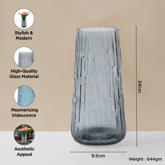 Glass Vase for Home Decor (2Pcs- 24cm) |Center Table Decorative Items| Flower Vases For Home Decor| Dining Table Decorative Items| Transparent Flower Vase For Living Room, Office, Bookshelf- Grey