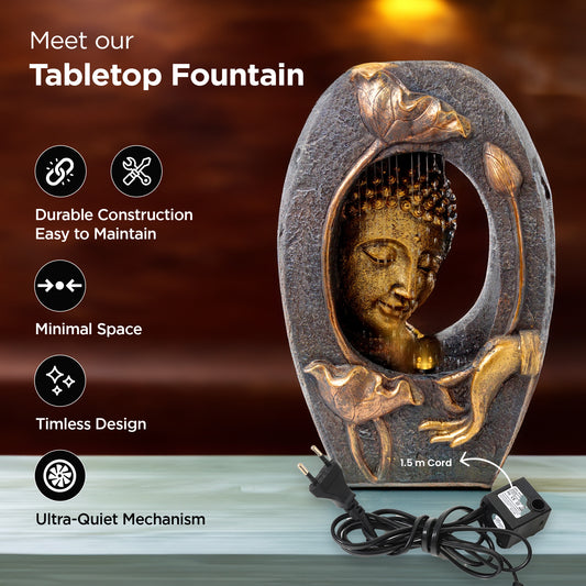 Buddha Water Fountains for Home Decor with LED Lights | Home Decor Items for Living room, Hall, Office, Garden, Table top, Balcony | Small Waterfall Fountain Showpiece | 55 CM Long | Bronze