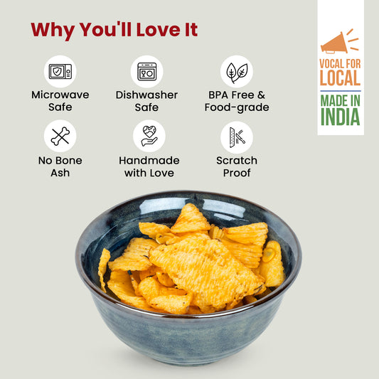 USHA SHRIRAM Ceramic Bowl for Snack & Dinner | Ramen Soup Bowl Microwave Safe | Chip Resistant Dinnerware | Snack Serving Bowl | Dinning Bowl Katoris for Dinner | Serving Bowl Set | Pasta Bowl