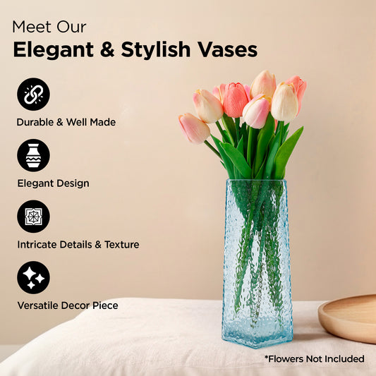 Glass Vase for Home Decor (2Pcs- 24cm) |Center Table Decorative Items| Flower Vases For Home Decor| Dining Table Decorative Items| Transparent Flower Vase For Living Room, Office, Bookshelf- Blue