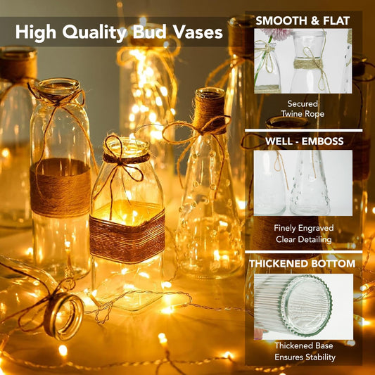 Set of 5: Clear Glass Bud Vases - Decorative & Elegant | Modern | For Home