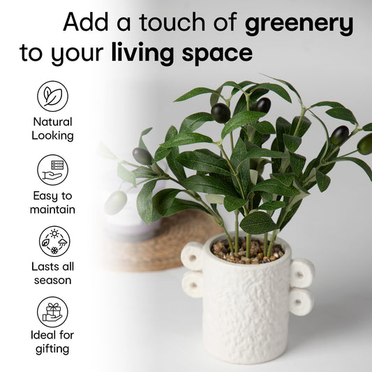 Artificial Olive Tree in Pot | 27cm x 20cm x 16cm |Textured Stoneware Vase Design | Show Piece for Home Decor, Office Desk, Bedroom, Balcony, Living Room, Table Top | Realistic Decorative Item